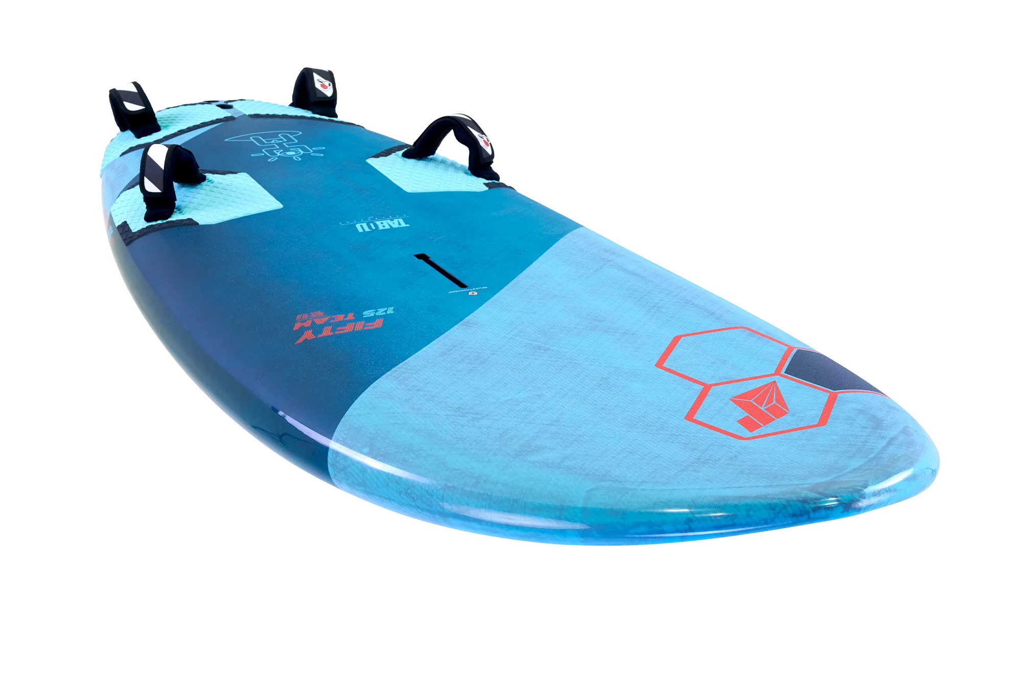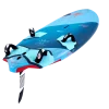 Die breite Outline im Heck bietet herausragenden Lift, der für schnelles Abheben beim Einsatz mit Foil erforderlich ist, und verbessert die Kontrolle beim Windsurfen mit Finne. Die durchdacht gestalteten großen Cut-Outs im Heck reduzieren die wasserbenetzte Fläche erheblich, was zu bemerkenswerten Höchstgeschwindigkeiten mit Finne und schnelleren Take-Offs beim Foilen führt.